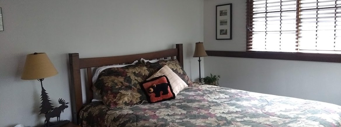 Adirondack Room The Adirondack room is on the second level with a private, full bathroom. The bedroom is shaded and woodland-like with its wooden shutters and exterior vines. It sleeps two with a queen bed. Its private bathroom is roomy and has a shower.